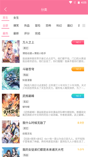 2、选择你感兴趣的漫画类型
