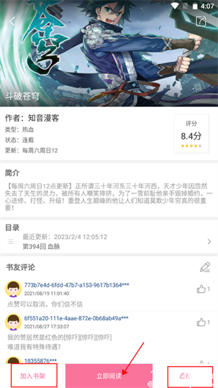 5、选择喜欢的漫画点击即可阅读,同时支持离线缓存和加入书架