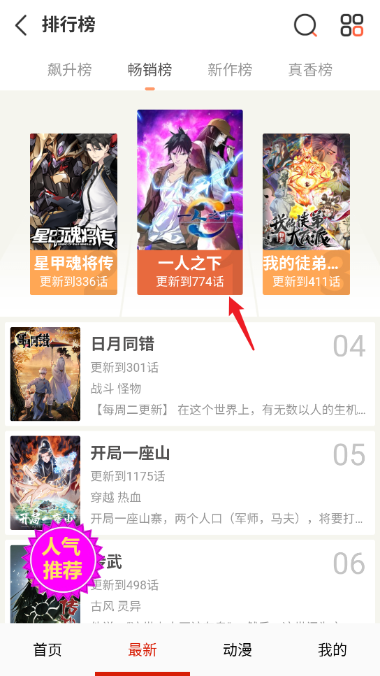 3、也可在最新页面根据榜单选择喜欢的漫画。