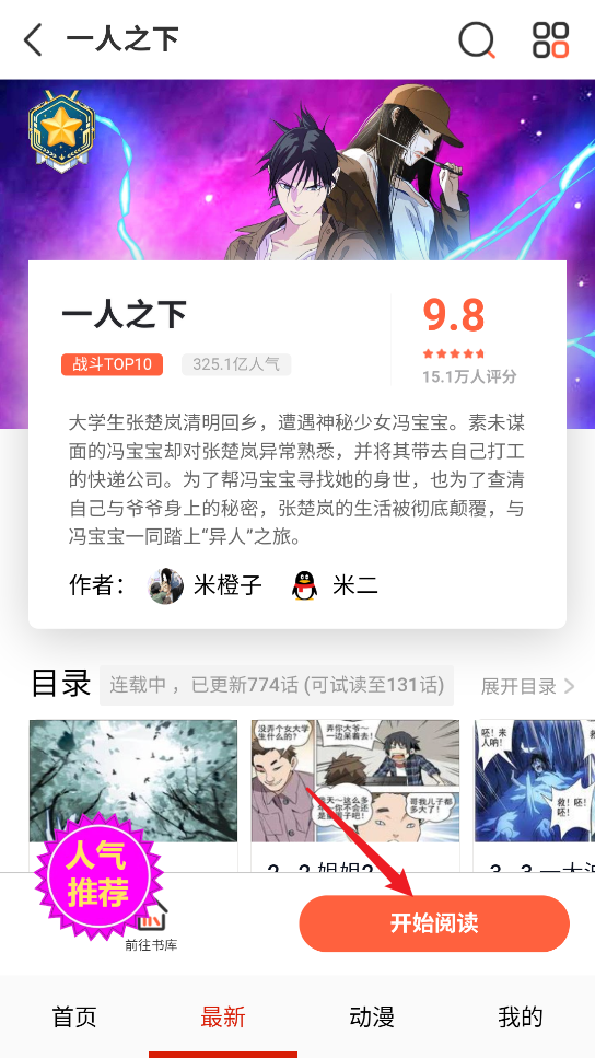 5、右下角点击开始阅读即可开始看漫画。