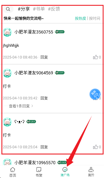 7、其中的漫广场则是为用户提供了一个交流的圈子,用户可以在这里愉快的交流。