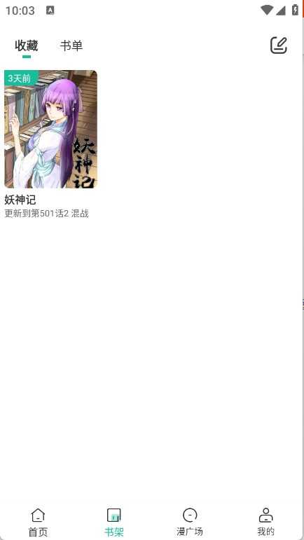 2、回到首页,点击书架就可以看到收藏的漫画了。
