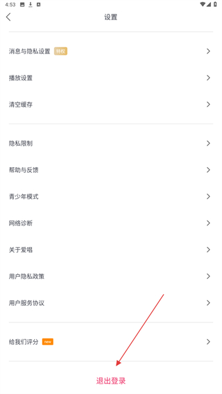 3、进入设置的界面内,点击最下方退出登录的按钮。
