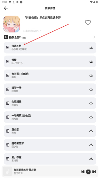 2、在歌单详情页中,点击想要设置为铃声的歌曲,进入歌曲播放页面。