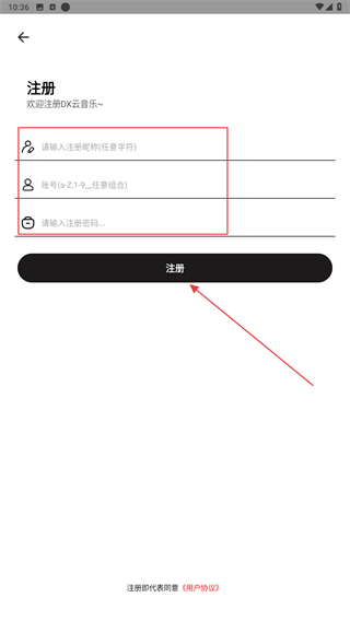 4、输入昵称、账号以及密码,再点击注册的按钮即可。
