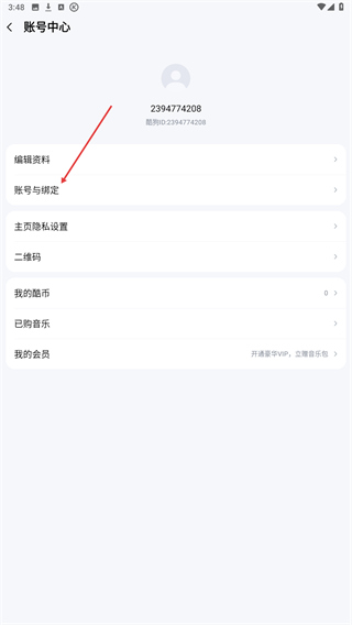 4、在账号中心页面点击账号与绑定选项,进入账号相关设置界面。