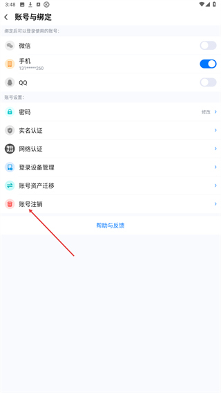 5、在账号与绑定页面找到账号注销选项,按提示完成注销流程。