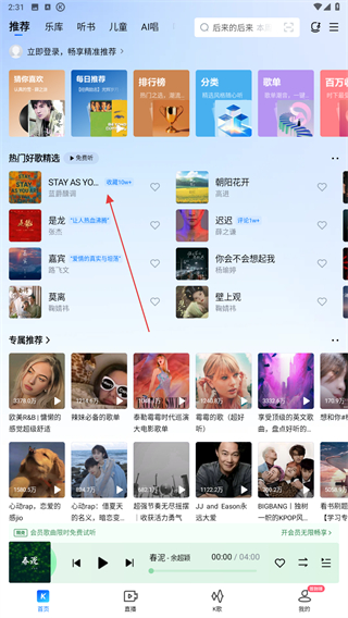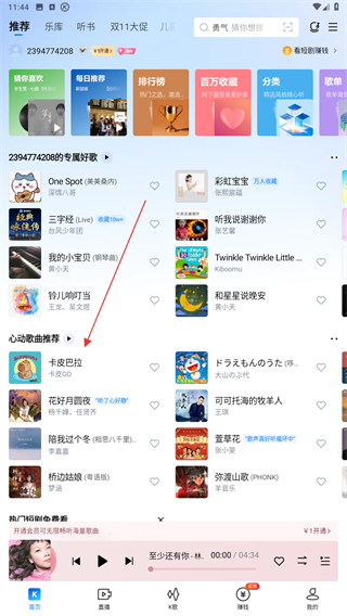 1、打开酷狗音乐的APP,点击首页要播放的歌曲名称。