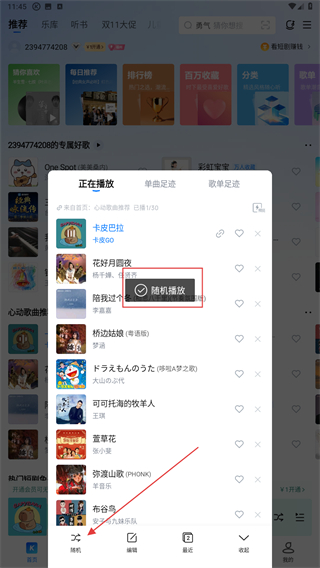 3、展示出播放的界面,点击左下跳转至随机播放即可。