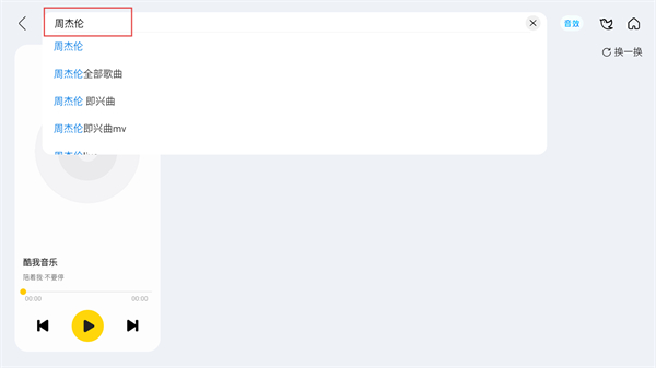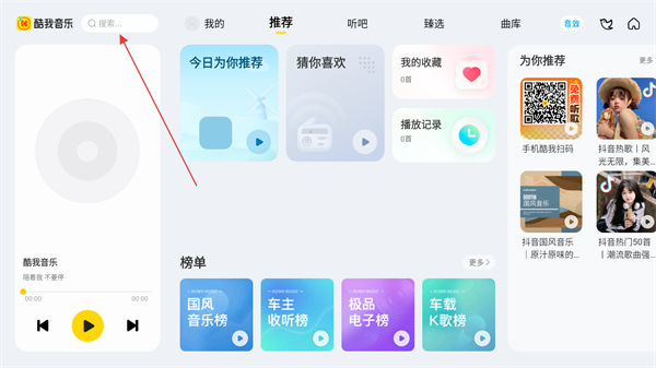 1、在酷我音乐主界面顶部找到搜索框,点击激活输入状态。
