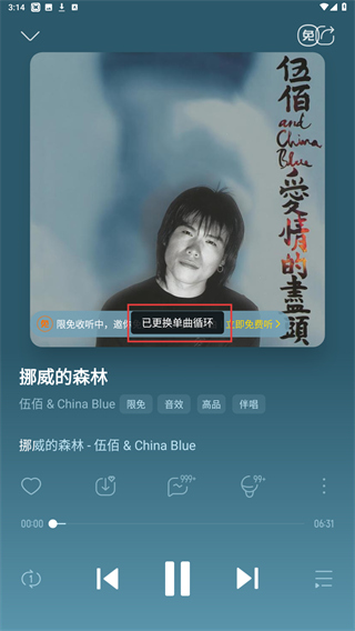 3、点击后,当页面显示已更换单曲循环的提示即可完成。