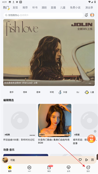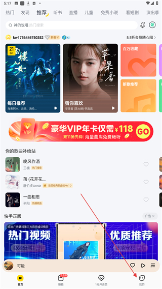 1、启动酷我音乐APP,进入首页点击右下我的按钮。