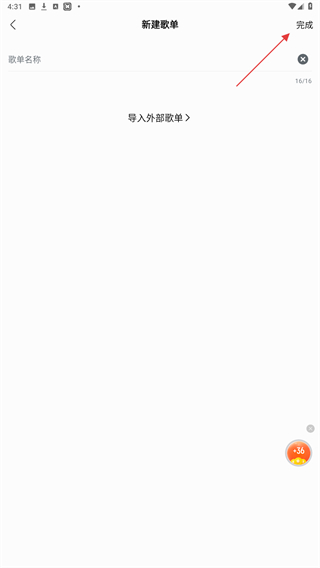 3、输入歌单名称后,点击右上角完成的按钮即可。