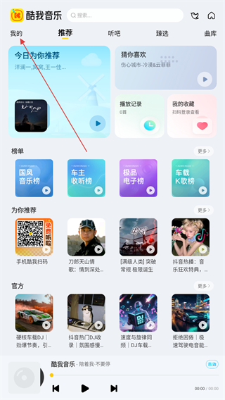 1、启动酷我音乐盒的APP,进入时点击左上角我的按钮。