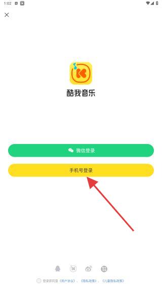 1、打开酷我音乐APP,一进入应用会弹出登录方式,点击手机号登录。