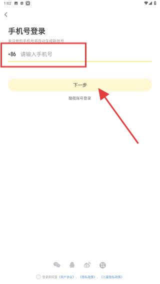 2、点击后,输入要登录的手机号码,再点击下一步。