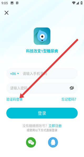 3、在登录界面,可选择验证码登录方式,点击切换使用验证码登录。
