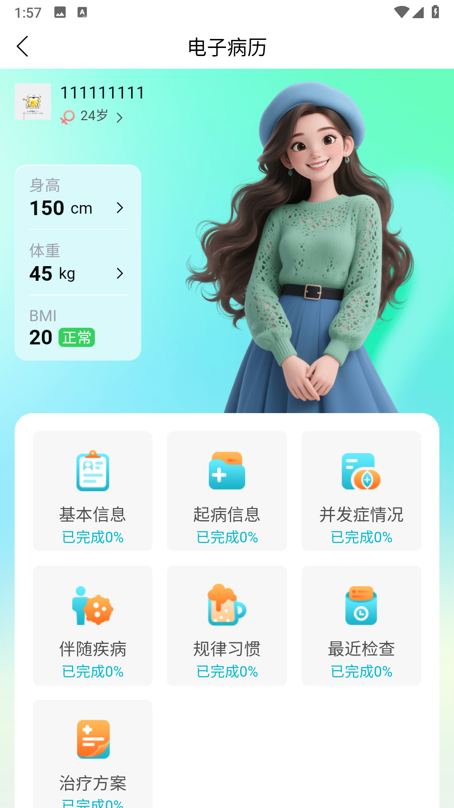 3、在电子病历页面,选择要填写的信息分类,进入具体填写界面。