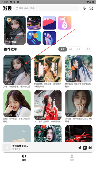 1、打开奇酷星球音乐APP,进入时点击歌单封面。
