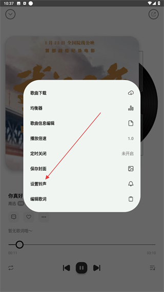 4、当页面弹出菜单栏时,点击设置铃声的按钮即可。