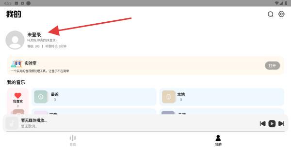 2、在我的页面,点击未登录的区域即可跳转至登录界面。