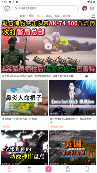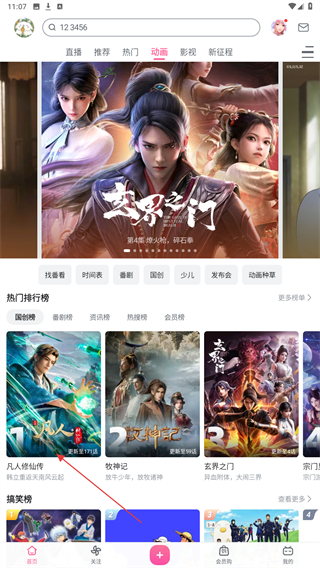 1、启动哔哩哔哩APP,进入首页点击动画的标签。