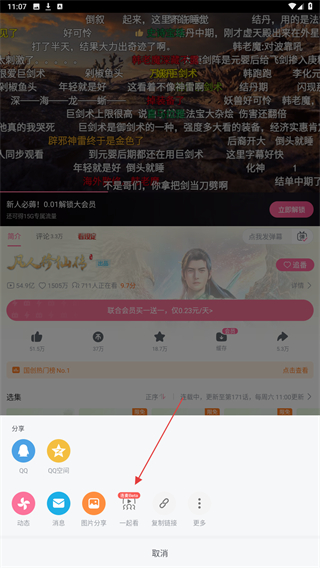4、在下方弹出的菜单栏中,点击一起看的按钮即可。