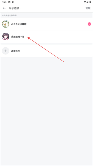 4、在账号切换的页面内,选择并点击要切换的账号即可。