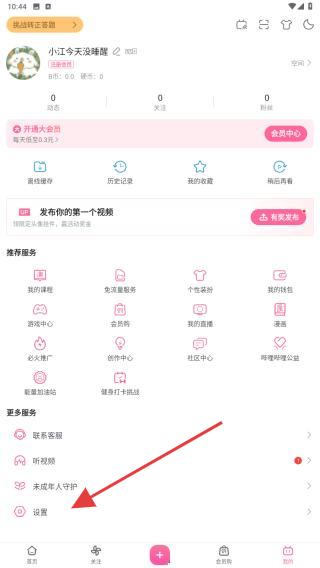 1、打开哔哩哔哩APP,在个人主页内,点击设置的功能按钮。