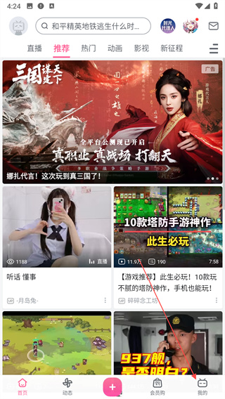 1、启动哔哩哔哩的APP,进入首页点击右下我的图标。