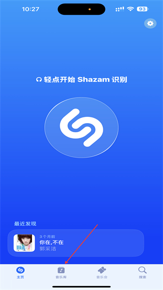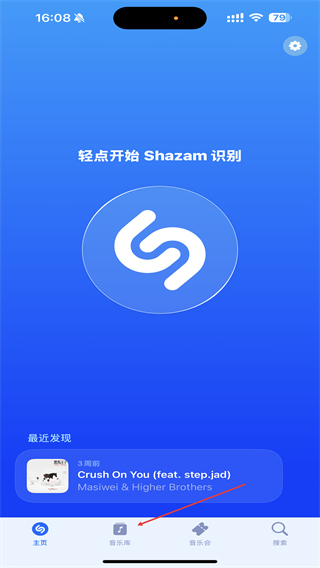 1、启动ShazamAPP进入到首页内,点击右上角蓝色的图标。