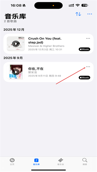 2、在音乐库的页面内,点击右侧三个点的功能按钮。