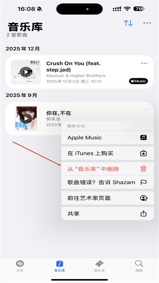 2、进入音乐库的界面内,点击要播放的歌曲名称。