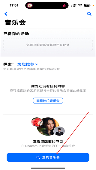 2、进入音乐会的界面内,点击下方查找音乐会的功能按钮。