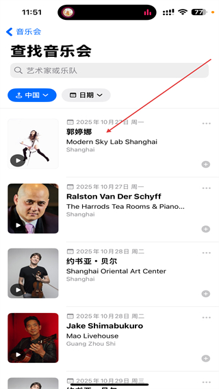 3、选择并点击想要查找的音乐会名称,即可查看详情内容。