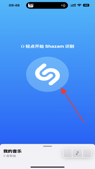2、点击后弹出识别的页面,识别前手机需要额外播放歌曲,再轻点开始Shazam识别的按钮。