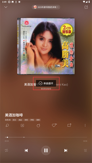 3、点击循环模式按钮,直至页面显示单曲循环的提示标识即可。