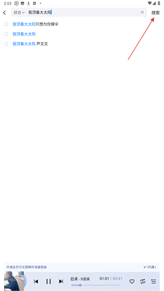 2、在输入框内输入歌词后,点击右侧搜索的按钮。