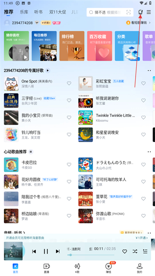 1、打开酷狗的应用,进入首页点击右上麦克风的图标。