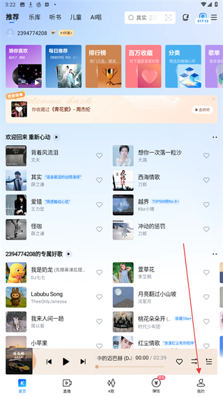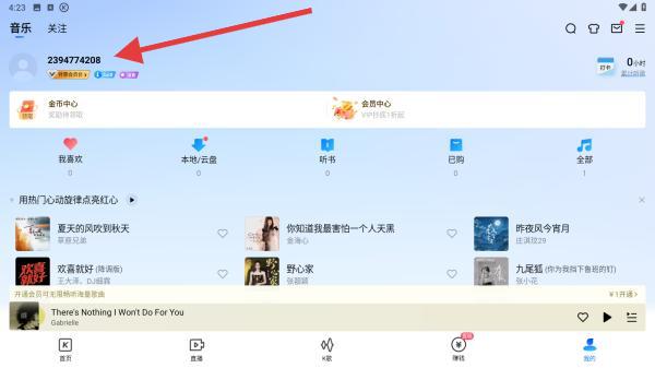 3、授权完成后,自动登录酷狗音乐,进入个人主页,顶部显示账号ID,代表登录成功。