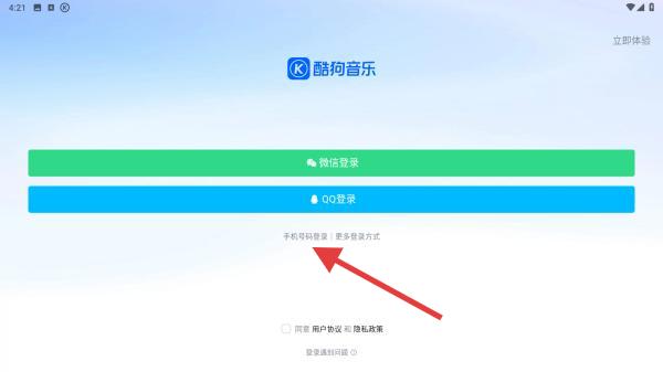 1、打开酷狗音乐APP,若未登录,会直接跳转至登录页面或在APP内点击我的触发登录流程。