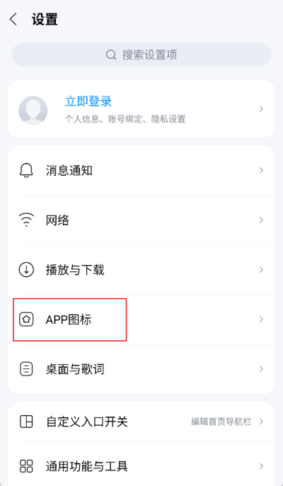 3、点击后进入设置功能界面,在设置功能界面中找到【APP图标】的选项;