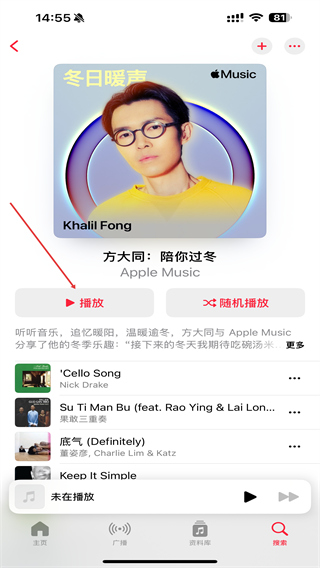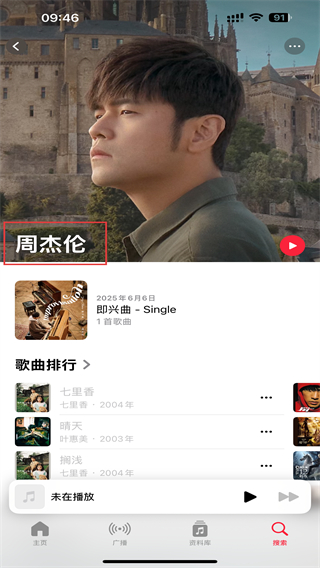4、点击后,进入艺人的详情页面内,可查看音乐内容。