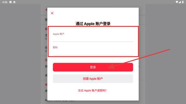 4、在弹出的通过Apple账户登录窗口中,输入你的AppleID和密码,然后点击登录按钮。