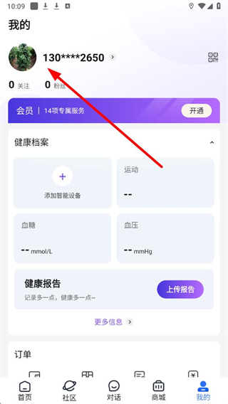 1、在老来健康首页界面,点击底部导航栏的我的选项,进入对应页面。