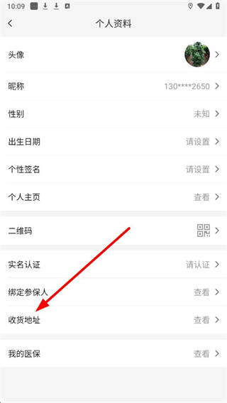 3、在展示头像、昵称等信息的个人资料页面,找到收货地址选项并点击,进入收货地址管理页面。