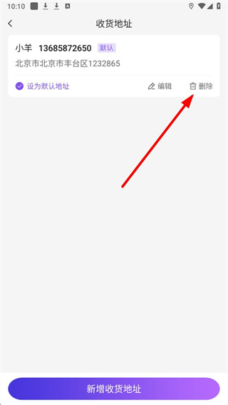 4、在显示已保存地址的页面中,找到目标地址右侧的删除按钮并点击,即可完成该地址信息的删除操作。