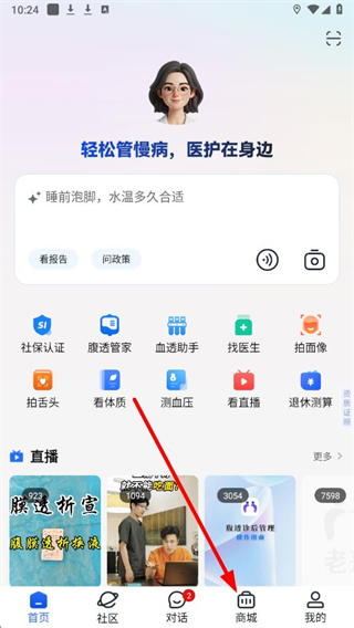 1、在老来健康app底部,点击商城,进入商城页面。