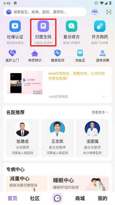 2、在这里可以通过扫医生码或者药店码及时的进行咨询等功能。