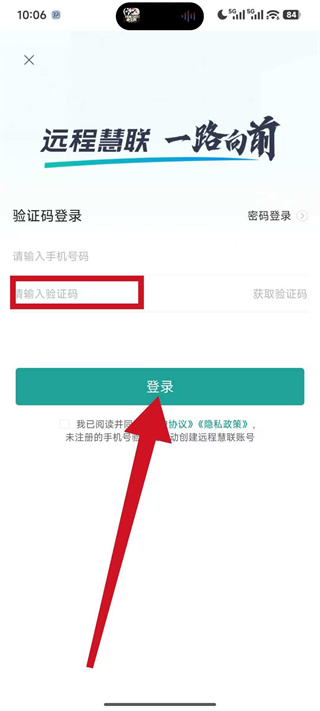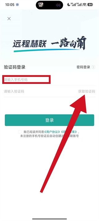 4、将收到的短信验证码填入验证码框,勾选相关协议后,点击登录,即可完成账号登录。